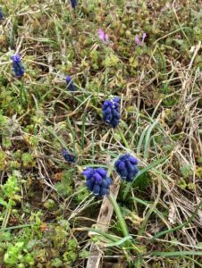 Picture 1. Blue flowers distinguish grape hyacinth from wild garlic