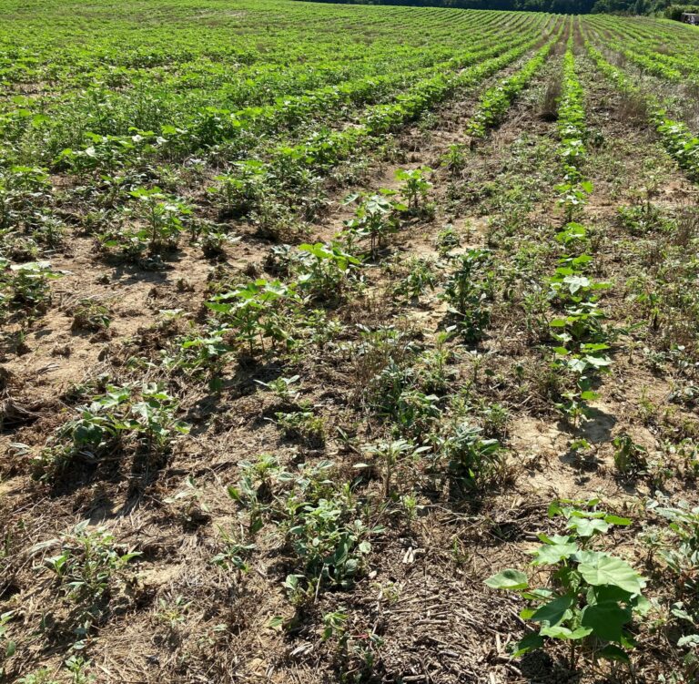 (Picture 1) Palmer amaranth escapes 18 days after 12.8 oz Engenia+ 32 oz glyphosate. A farmer’s field, Lauderdale County, Tennessee — photos courtesy University of Tennessee