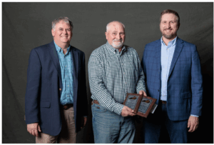 Jason Phillips of Simpson County was honored as a supervisor with three or more entries submitted in the 2025 Kentucky Soybean Yield and Quality Contest. Pictured left to right are: Mohammad Shamim (University of Kentucky), Jason Phillips, Fred Sipes (Kentucky Soybean Board).