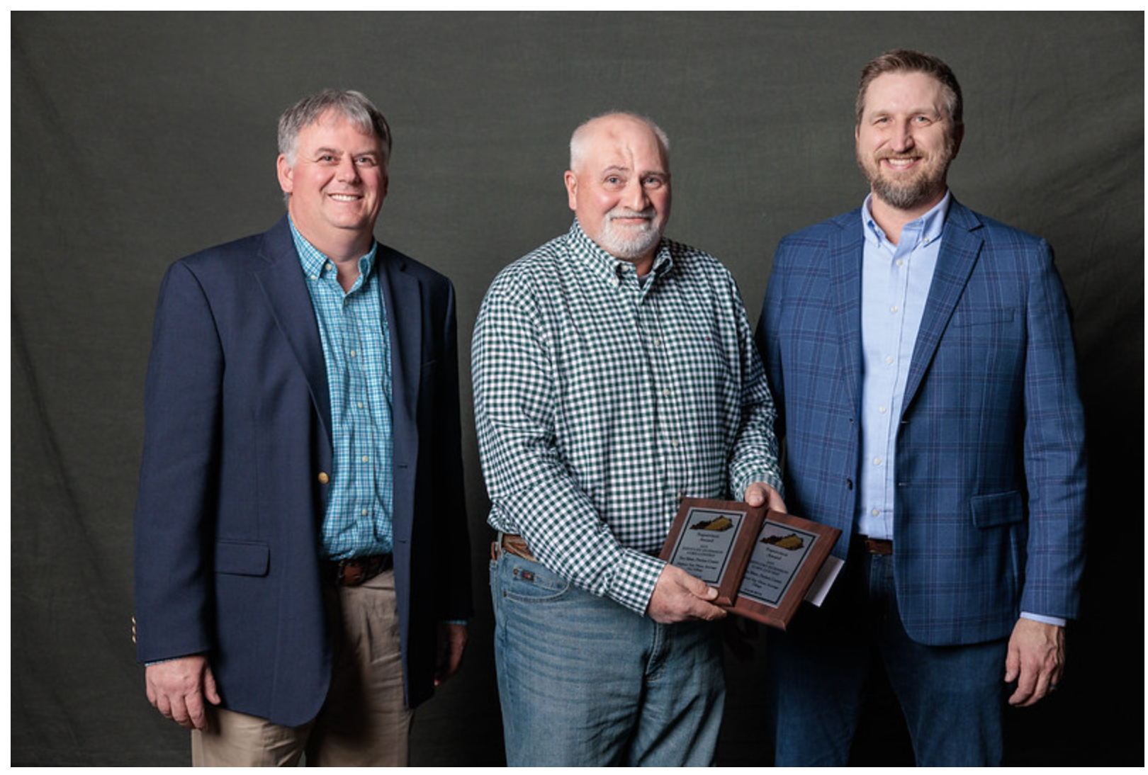 Troy Muse of Daviess County was named top supervisor in the 2025 Kentucky Corn Yield Contest for having the top average yields in both the tillage and no-till divisions. Pictured left to right are Scott Ebelhar (Ky Corn Growers), Troy Muse and Chad Lee (University of Kentucky).
